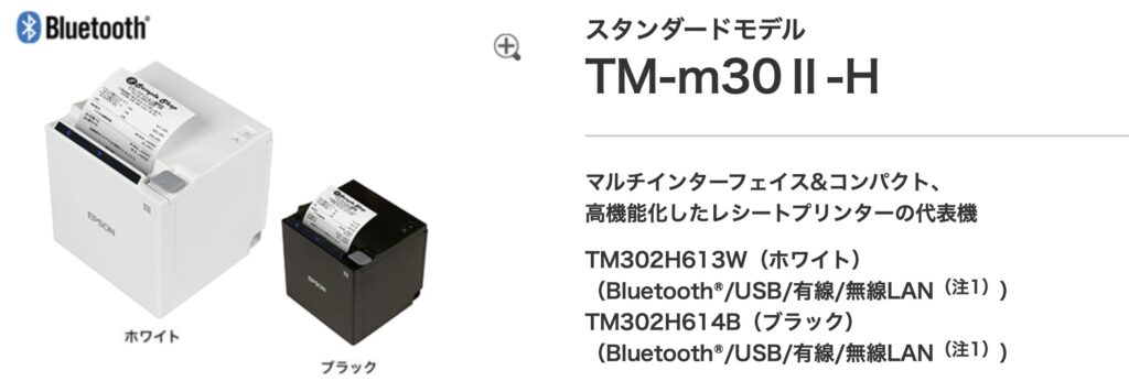 エプソンのTM-m30II-Hは、クラウドPOSレジとの相性に優れたハイエンドモデルです。USB・LAN・Bluetoothに加え、USB Type-C給電にも対応しており、タブレットを充電しながら接続できます。印字速度は250mm/秒で、静音かつ高精細な印字が可能。さらに、前出し・上出しの両対応設計で、設置場所を選ばない柔軟性も魅力です。洗練されたデザインと高機能を兼ね備えた、業界でもトップクラスの人気機種です。