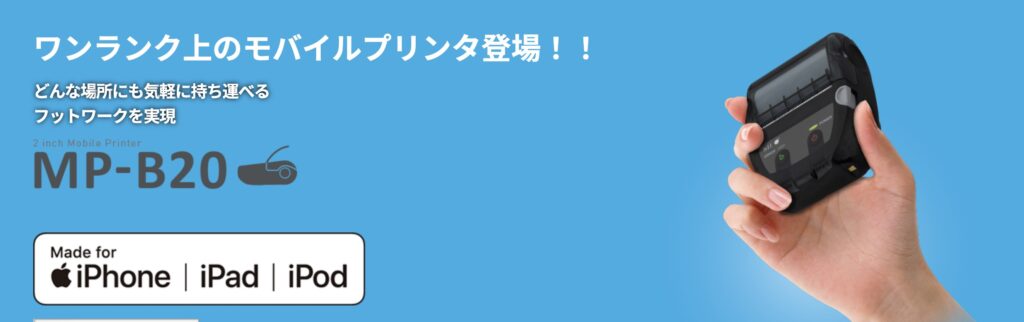 シチズンシステムズのMP-B20は、持ち運び可能なモバイルレシートプリンターです。コンパクトな手のひらサイズで、BluetoothやUSB接続に対応。バッテリー駆動で、屋外販売や移動販売車、イベント出店などにも最適です。落下耐性1.5mの堅牢設計で、持ち運び中の衝撃にも強いのが特徴。印字速度も最大80mm/秒とスムーズで、軽量ながら業務用途にも十分対応できる信頼性を備えています。