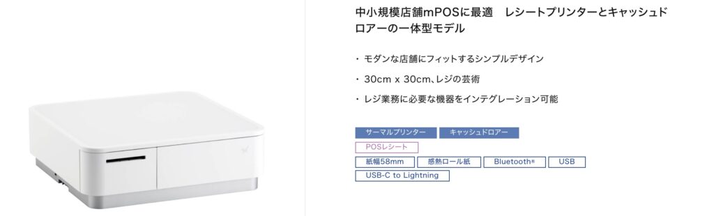 レシートプリンター内蔵キャッシュドロアー mPOP