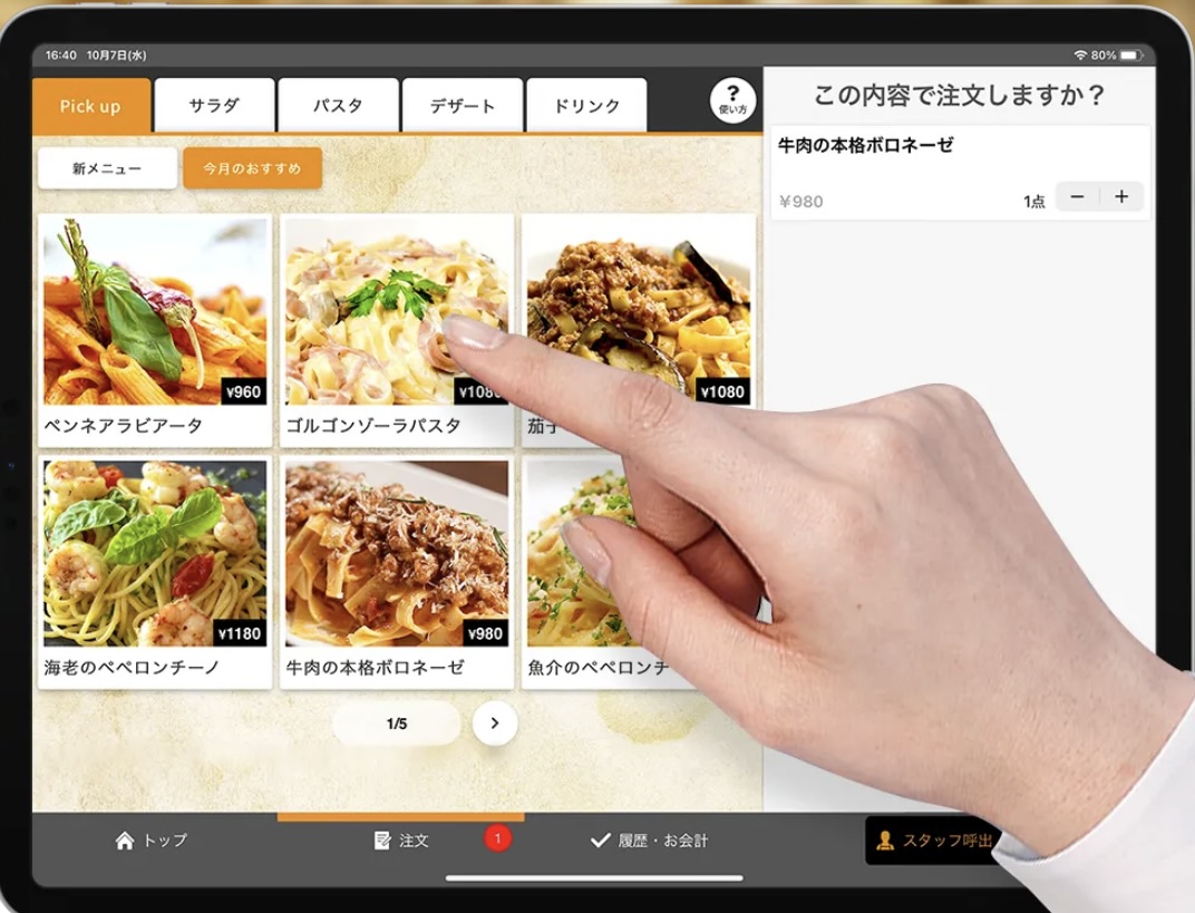 セルフオーダーシステムは、顧客が自分のタイミングで好きなメニューを注文できる点が魅力です。追加注文のハードルが下がることで注文数が増える傾向にあり、店舗の売上向上にも直結します。